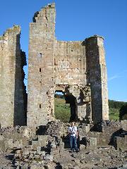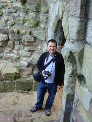 Edlingham-Greg at entrance to Hall House in front of the Solar tower.jpg