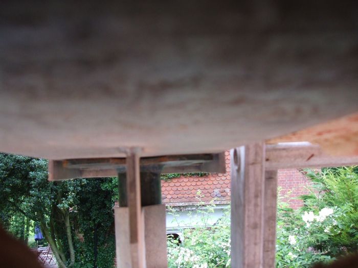 The view through the hole in the stairs (where the support is)